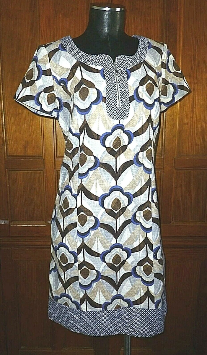 New ~ CAROLINE BISS ~ Woven Cotton Retro Floral Print DRESS size