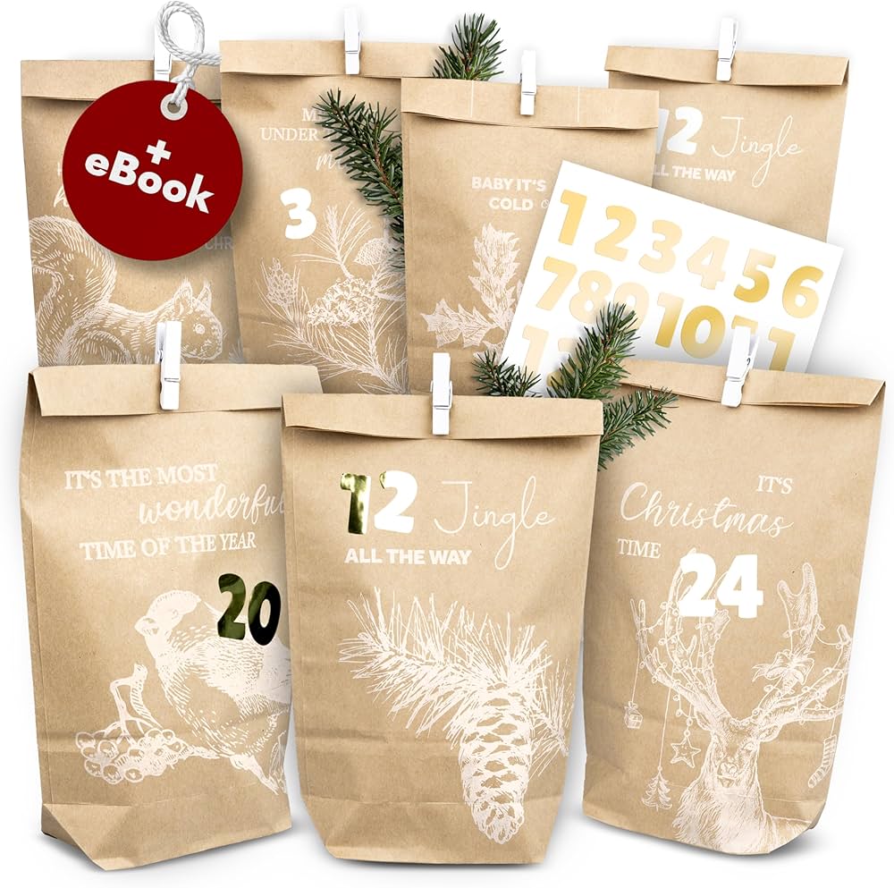AMARI ® Adventskalender zum Befüllen 24 Papier Adventstüten (mit